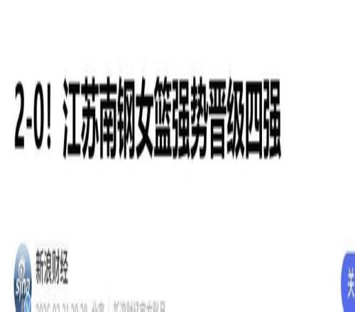 新浪財經(jīng):(2-0!江蘇南鋼女籃強(qiáng)勢晉級四強(qiáng)2026.03.30)