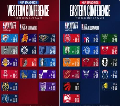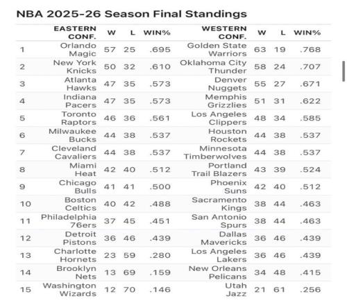 1.魔術(shù)57勝25負(fù)、2.尼克斯50勝32負(fù)、3.老鷹47勝35負(fù)、4.步行者47勝35負(fù)、5.猛龍46勝36負(fù)、6.雄鹿44勝38負(fù)、7.騎士44勝38負(fù)、8.熱火42勝40負(fù)、9.公牛41勝41負(fù)、10.凱爾特人40勝42負(fù)、11.76人37勝45負(fù)、12.活塞36勝46負(fù)、13.黃蜂23勝59負(fù)、14.籃網(wǎng)13勝69負(fù)、15.奇才12勝70負(fù)