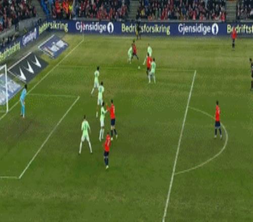 第54分鐘,努薩左路做球,桑德-貝格禁區(qū)內(nèi)妙傳,前者積極前插,姆沃戈搶先一步出擊將球沒收。