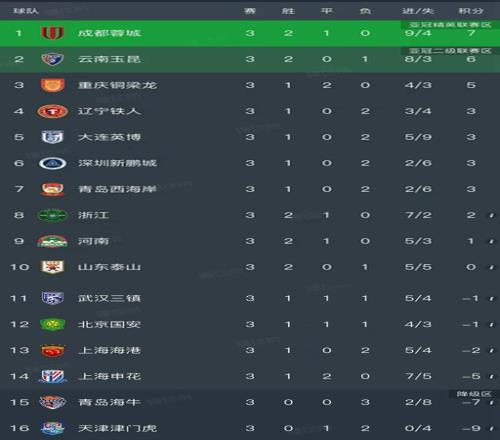 北京時(shí)間3月21日,今日的中超聯(lián)賽第三輪結(jié)束了剩下了6場對決,我們看看最新積分榜的變動!主要的戰(zhàn)報(bào)是:成都蓉城3-3重慶銅梁龍,河南隊(duì)1-1武漢三鎮(zhèn),山東泰山0-4慘敗云南玉昆,青島西海岸1-0深圳新鵬城,遼寧鐵人3-0天津津門虎,北京國安1-1上海申花!
